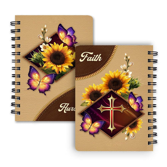 Personalized Sunflower And Butterfly Spiral Journal, Inspiration Gifts For Christian People