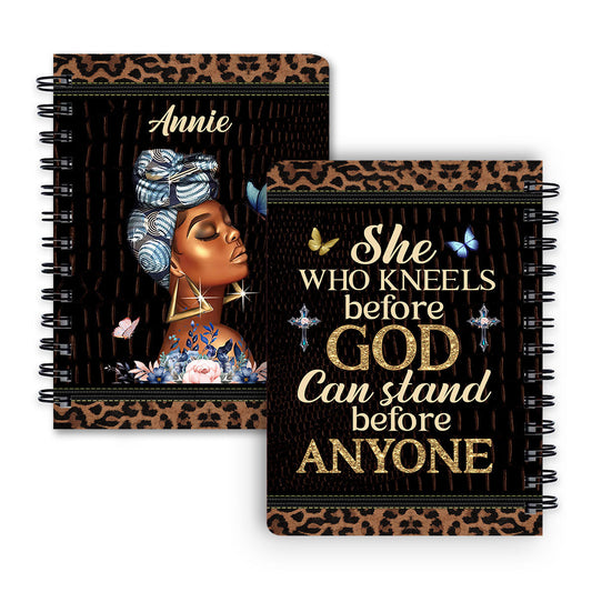 She Who Kneels Before God Can Stand Before Anyone Personalized Spiral Journal, Inspiration Gifts For Christian People