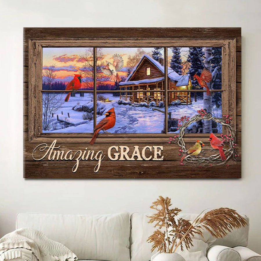 Amazing Grace Canvas Wall Art - Cardinal Birds - Christian Christmas Wall Decor - Christian Wall Decor