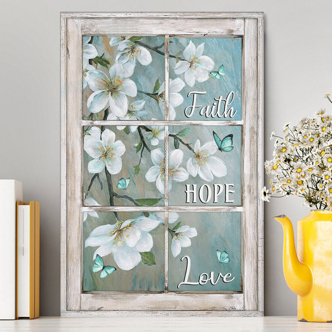 Faith Hope Love Window Flower White Canvas Wall Art - Christian Wall Art Decor - Religious Canvas Prints