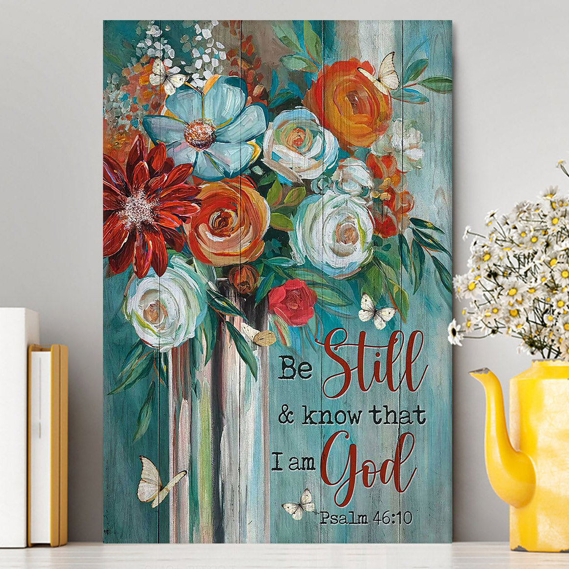 Flower Butterfly Be Still And Know That I Am God Canvas Art - Christian Art - Bible Verse Wall Art - Religious Home Decor