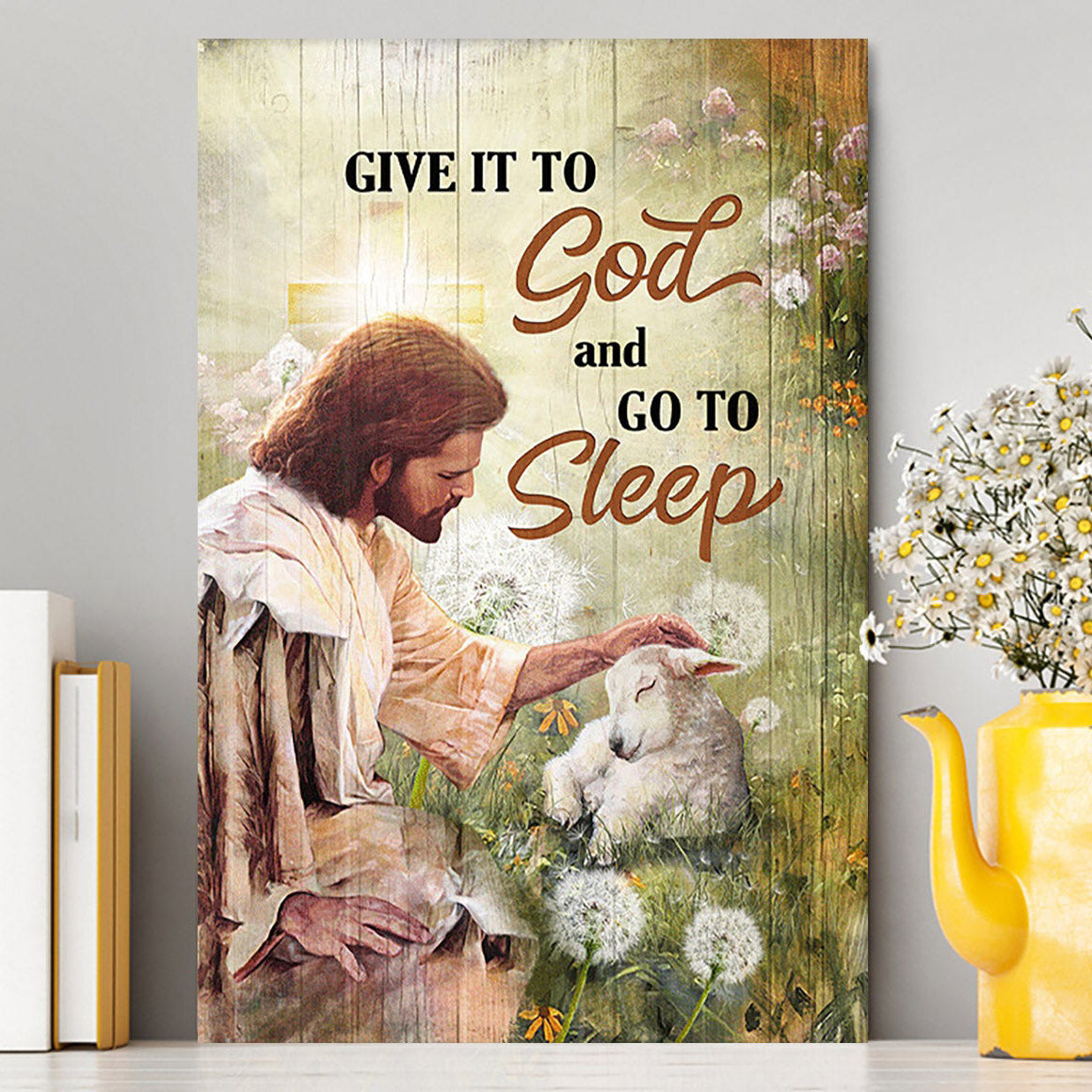 Give It To God And Go To Sleep Canvas - Jesus Baby Lamb Dandelion Field Canvas Wall Art - Christian Canvas Prints
