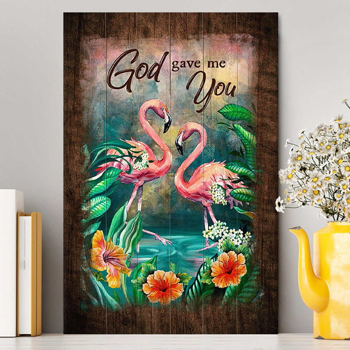 God Gave Me You Flamingo Hibiscus Canvas Art - Bible Verse Wall Art - Christian Inspirational Wall Decor