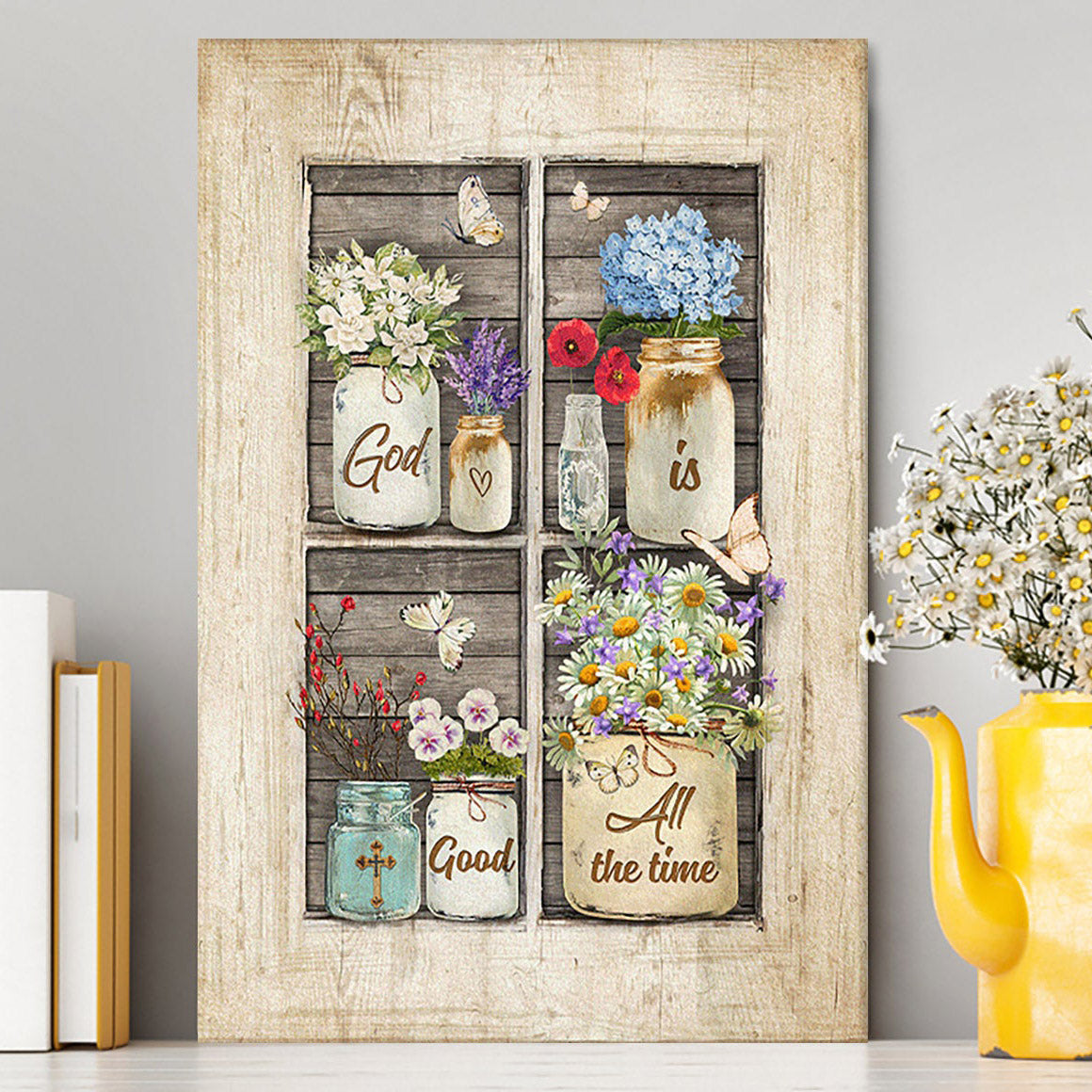 God Is Good All The Time Flower Pretty Butterfly Canvas Art - Bible Verse Wall Art - Christian Inspirational Wall Decor