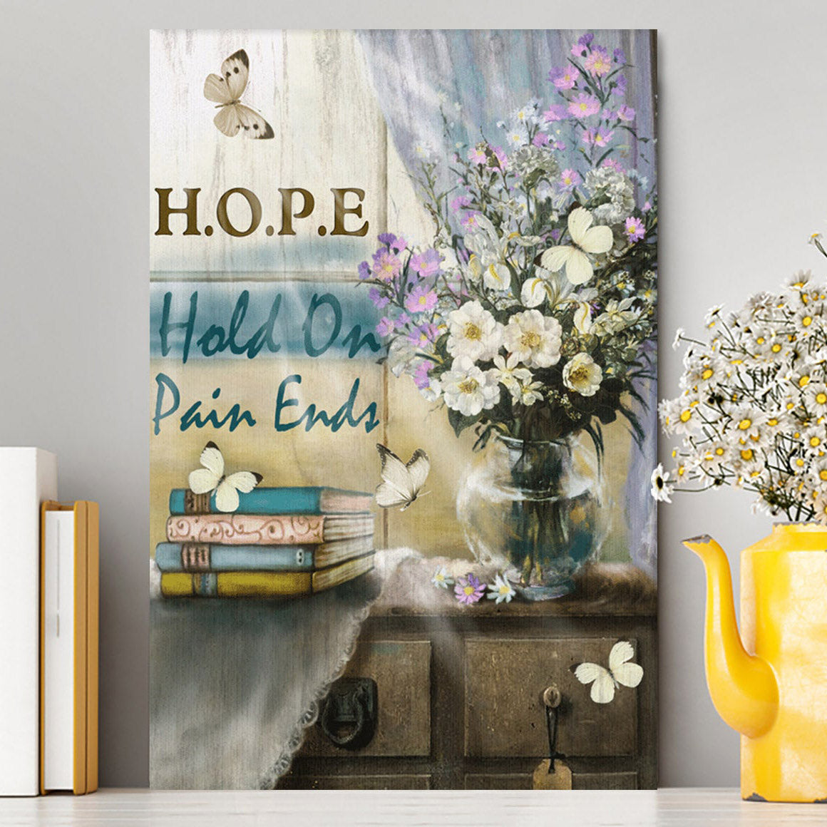 Hope Hold On Pain Ends Butterfly Flower Window Canvas Wall Art - Christian Wall Art Decor - Religious Canvas Prints