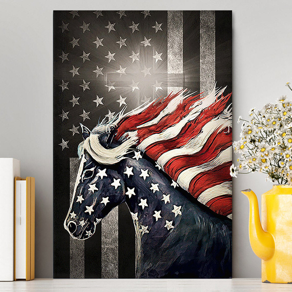 Horse Us Pattern Black Background Us Flag Canvas Canvas Wall Art - Christian Canvas Prints - Bible Verse Canvas Art