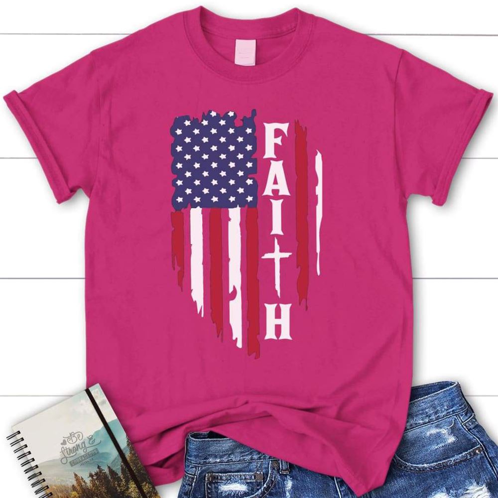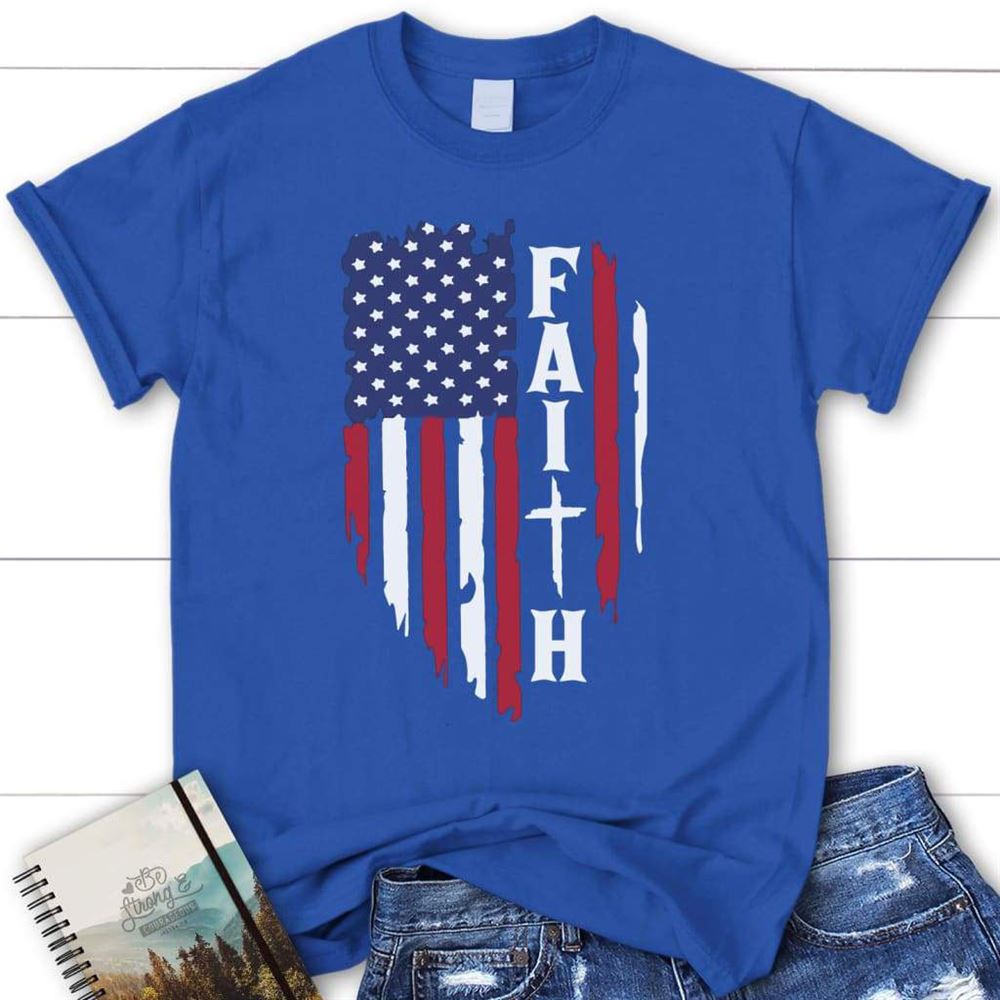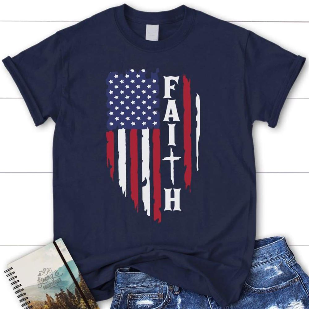 Faith And American Flag Christian T Shirt, Blessed T Shirt, Bible T shirt, T shirt Women
