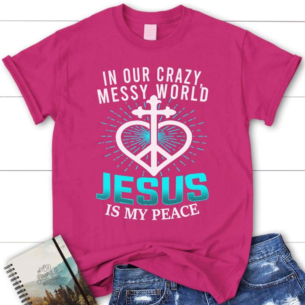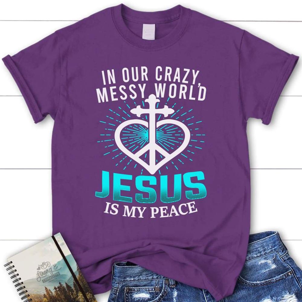 In Our Crazy Messy World Jesus Is My Peace Womens Christian T Shirt, Blessed T Shirt, Bible T shirt, T shirt Women