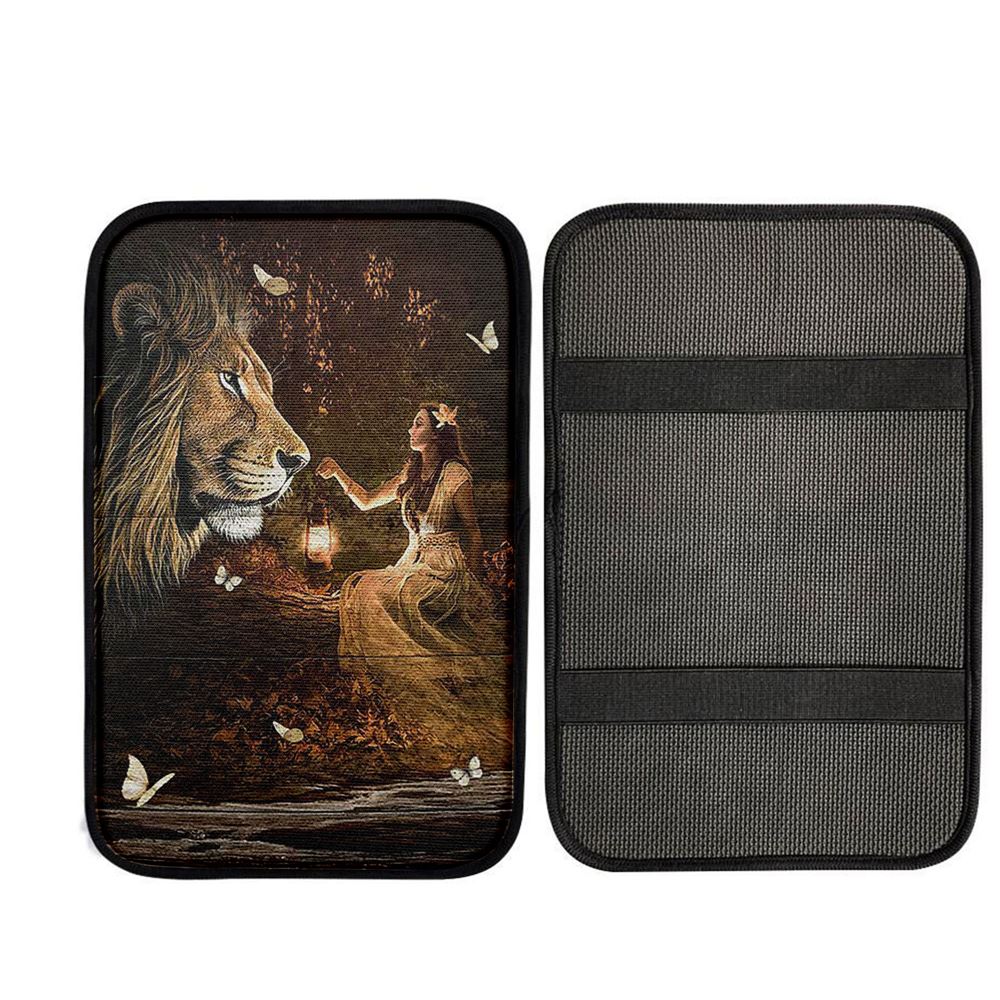 Lion Of Judah Pretty Girl White Butterfly Car Armrest Pad - Lion Car Center Console Cover, Christian Gift Car Armrest Pad