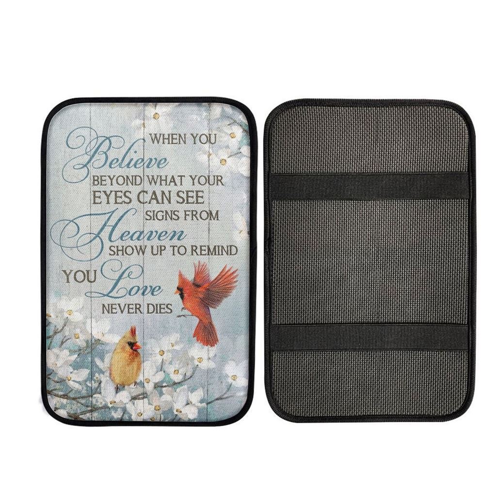 Pretty Cardinal When You Believe Beyond What Your Eyes Can See Car Center Console Cover, Car Armrest Pad, Christian Gift, Armrest Box Mat