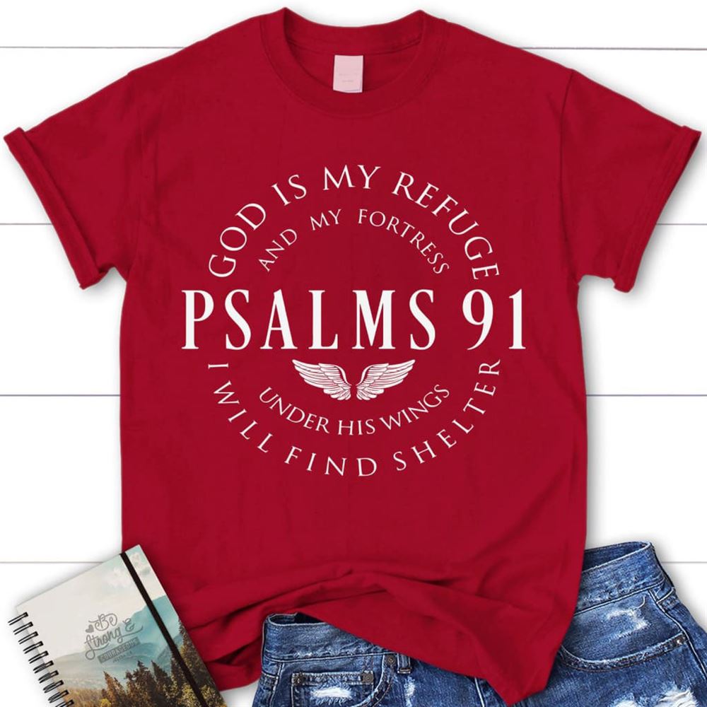 Psalm 91 Shirt, God Is My Refuge And My Fortress Christian T Shirt, Blessed T Shirt, Bible T shirt, T shirt Women